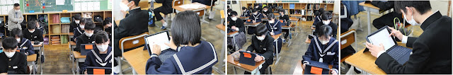 3年生家庭科の学習には、保育の学習内容があります。毎年、この時期に、みやこ保育園で幼児とのふれあい体験学習をしていました。今年もその学習にむけて、おもちゃ作りや絵本の読み聞かせなど準備を進めてきました。 12月6日に、鳥取県東部地区にはコロナ感染特別警報が発令され、翌7日に予定していた3年1組、8日の3年2組、9日の3年3組の体験学習がすべて中止となりました。それでも、今まで準備してきた手作りのおもちゃは保育園に届けたいと、訪問だけさせていただきました。今日は、最後になった3年3組が保育園訪問をしました。 園内で幼児と触れ合うことはできませんでしたが、手遊びグッズやおもちゃなど園の職員さんへ託した後、少し離れて距離を取りながら、幼児が遊ぶ様子を見せていただきました。3年生はとても残念がっていましたが、これも致し方ないことです。